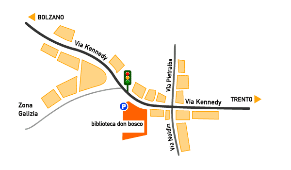 La sede della biblioteca don Bosco in via J. F. Kennedy, 94 è localizzata all'interno del Centro don Bosco a Laives. L'edificio, situato vicino al centro cittadino, sulla strada statale SS 12, è facilmente raggiungibile, anche grazie ad una buona segnaletica esterna.